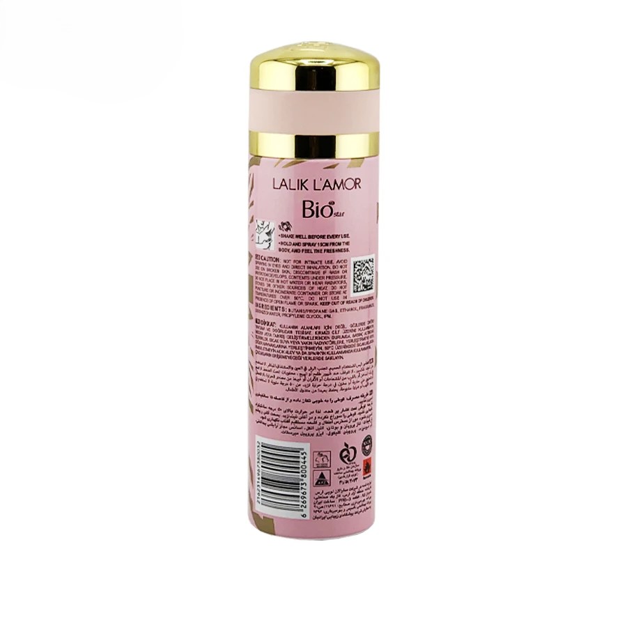 اسپری بدن زنانه بیو استار مدل (لالیک لامور) دارای پرفیوم های معطر بوده که به عنوان کامل کننده عطر استفاده میشوند.