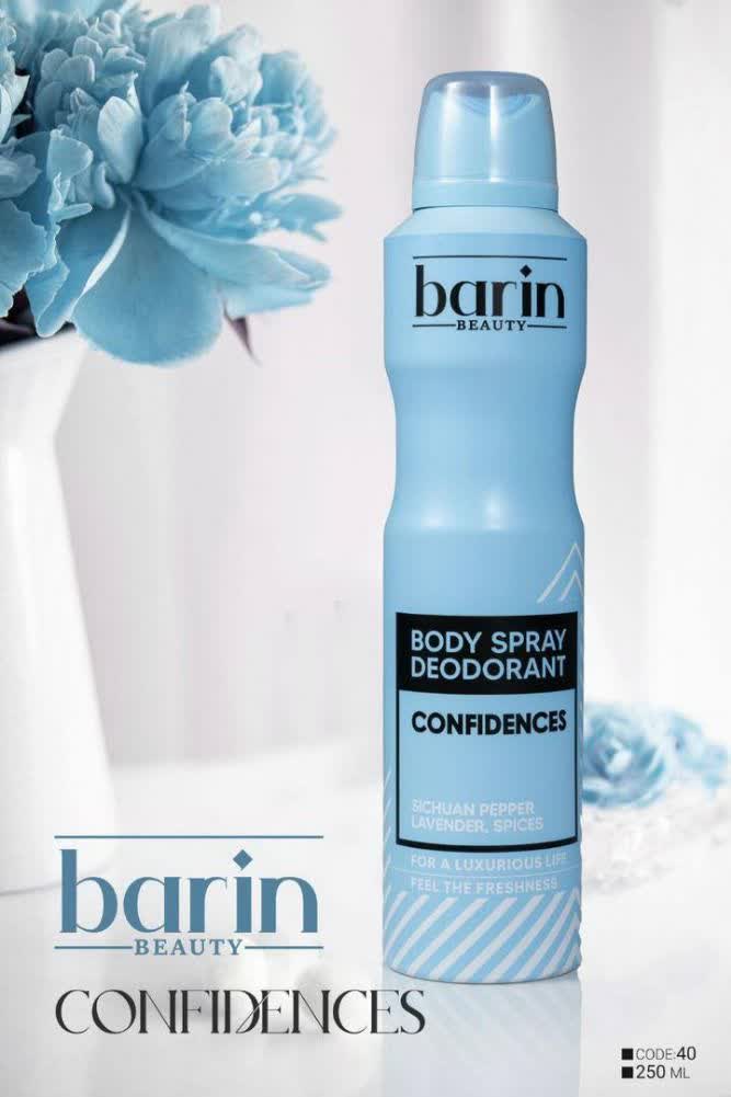 خرید اسپری خوشبو کننده بارین مدل Confidences اسپری بدن بارین محصولی خوشبوکننده و مراقبتی است که به حفظ بوی مطبوع و سلامت