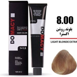 رنگ موی دوماسی محصولی ایرانی و بسیار باکیفیت و پر طرفدار است. این محصول حاوی ویتامین C است و به راحتی از آسیبدیدگی موها جلوگیری میکند. دوماسی حاوی مواد نرمکننده است، که بلافاصله پس از استفاده تاثیر آن را بر روی موهای خود احساس میکنید. از دیگر ویژگیهای این رنگ مو میتوان به دارا بودن عصاره آلوئهورا، ماندگاری بالای رنگ، پوشانندگی کامل موهای سفید و دارا بودن روغن کنجد و زیتون اشاره کرد. رنگ موی دوماسی DOMACY یک رنگ موی جدید با غلظت بالا و رنگ دهی عالی برای پوشش موهای سفید می باشد